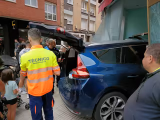 Según las mismas fuentes, el turismo, que circulaba por la calle de Eulalia Álvarez, se saltó un ceda el paso e impactó contra el otro vehículo, que acabó destrozando la entrada del local.