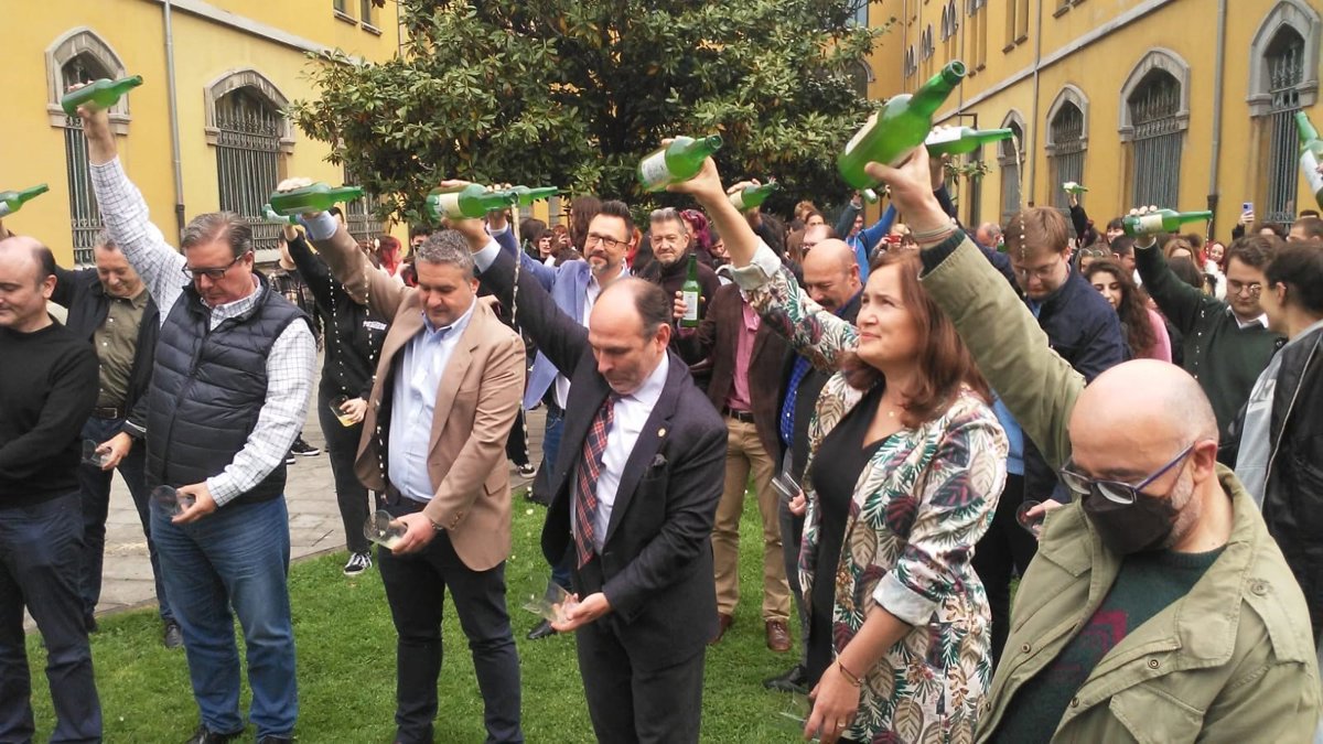 Villaverde lo ha indicado así en el escanciado celebrado en el Campus de El Milán, un acto de apoyo del rectorado organizado por la Cátedra de la Sidra de Asturias a iniciativa de la DOP que se ha celebrado en todos los campus de la región y que ha contado, además de con profesores y personal universitario, con el alumnado de las facultades.