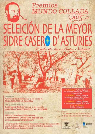Villaviciosa, continúa este domingo con su particular octubre sidrero y es que tras el intenso programa del Festival de la Manzana, acoge hoy el certamen Seleición de la Meyor Sidre Casero de Asturies, Premios Mundo Collada, nacidos en Villaviciosa en 2016, y organizados por la Asociación de Fomento de la Sidra Tradicional Asturiana con la colaboración del Ayuntamiento de Villaviciosa.