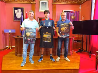 José Antonio Fernández Costales, concejal de deportes, Manolo Villazón, presidente del Club de Atletismo Villaviciosa - El Gaitero, Iván Rubio, atleta del club maliayo, presentan la 41 edición de la Ruta Imperial Carlos V Tazones-Villaviciosa. - AYUNTAMIENTO DE VILLAVICIOSA
