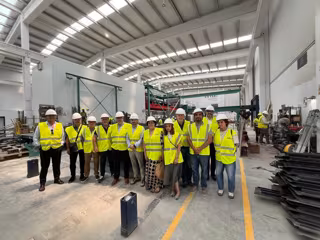 El director general de la Dirección General de Vivienda del Principado, Daniel Sánchez, junto a personal técnico, ha visitado este jueves la fábrica de construcción industrializada integral del Grupo Avintia, ubicada en Aranda de Duero (Burgos), encargada de la fabricación de los paneles que se utilizarán en la construcción del futuro edificio de la parcela de Peritos, en Gijón.