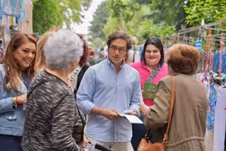 El presidente de Vox Asturias, diputado nacional y candidato a las Elecciones Europeas, José María Figaredo, de campaña electoral en Langreo. - VOX