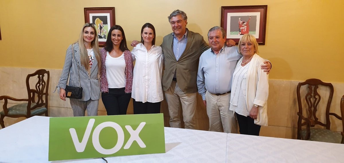 Archivo - El portavoz de Vox Gijón, Eladio de la Concha (en el centro de la imagen), tras los resultados electorales de los pasados comicios locales - VOX - Archivo