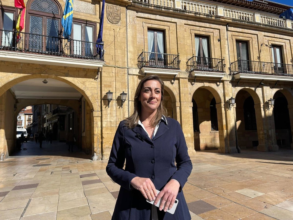 Archivo - La portavoz de Vox en el Ayuntamiento de Oviedo, Sonsoles Peralta, este lunes frente al Consistorio. - EUROPA PRESS - Archivo