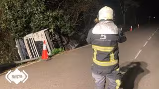 Un camión cisterna que transportaba leche ha volcado en la N-632, a la altura de la parroquia de Soto de Luiña, en Cudillero, sin provocar daños personales.