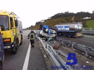 El Centro de Coordinación de Emergencias del 112-Asturias recibió el aviso a las 9.58 horas. En la llamada se indicó que un camión, con una cuba de leche, había volcado y el conductor no podía salir. De inmediato se movilizó a tres efectivos de Bomberos de Asturias, con base en el parque de Valdés, que se trasladaron con el furgón multisocorro y el vehículo primera salida.