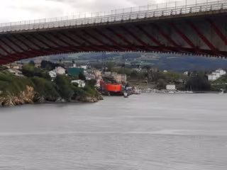 Archivo - Ría del Eo, límite entre Asturias y Galicia, desde Ribadeo (Galicia) con los astilleros Armón al fondo y el puente de la Autovía del Cantábrico A-8 a su paso por la localidad. - EUROPA PRESS - Archivo