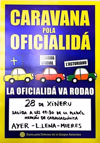 Esta tercera caravana de coches por la oficialidad saldrá por la mañana, a las 11.30 horas de la Plaza el Mercado de Cabañaquinta y recorrerá los concejos de Aller, Lena y Mieres. En este último concejo será el final de la caravana y la hora de llegada será sobre las 14.00 horas.