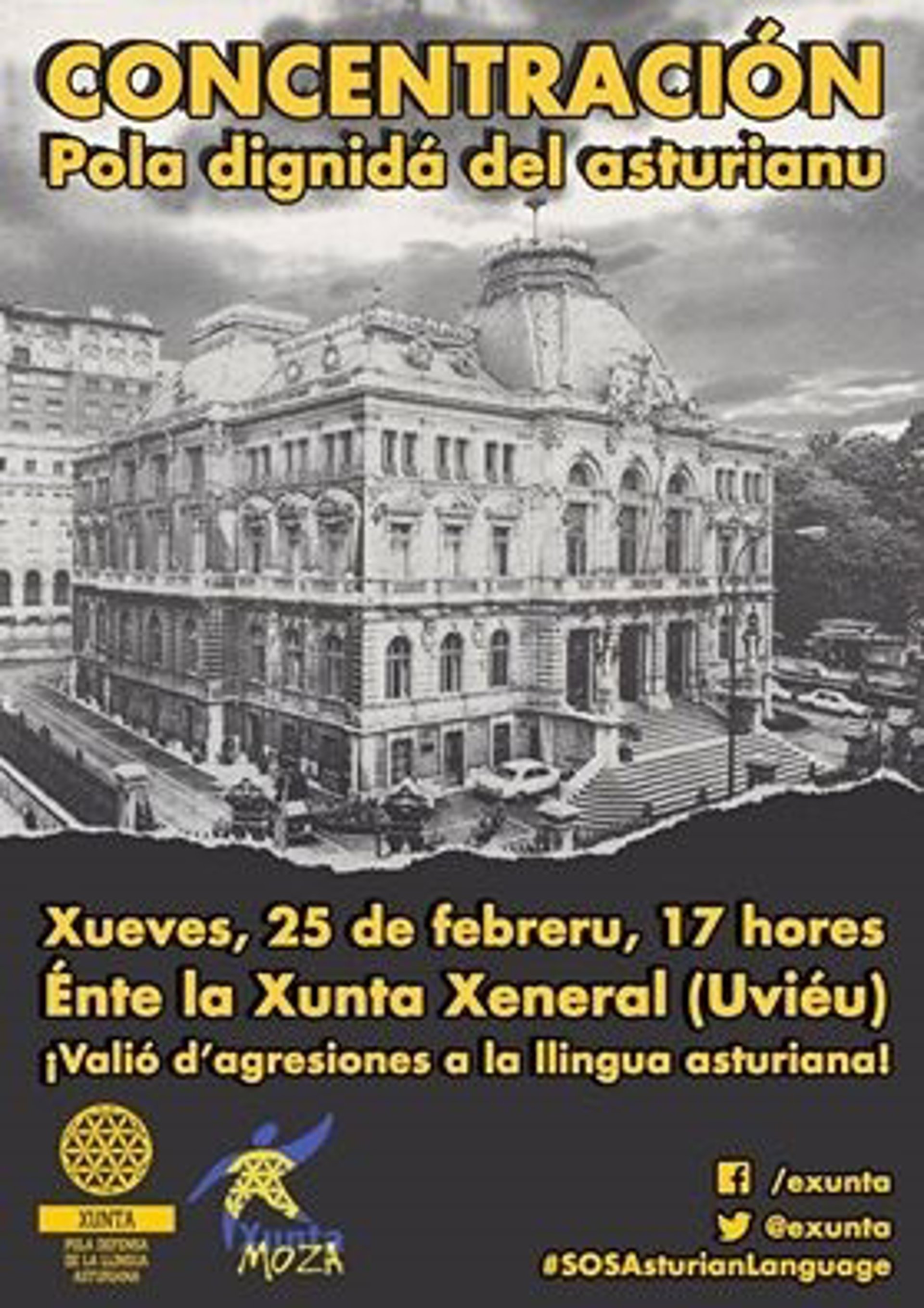La Xunta pola Defensa de la Llingua Asturiana (XDLA) ha convocado este miércoles a "todos los asturianos" a una concentración "para mostrar su condena más enérgica al ataque contra los derechos lingüísticos y las libertades individuales que el PP asturiano, con la complacencia de la FSA, Ciudadanos y Foro, acaba de llevar adelante".