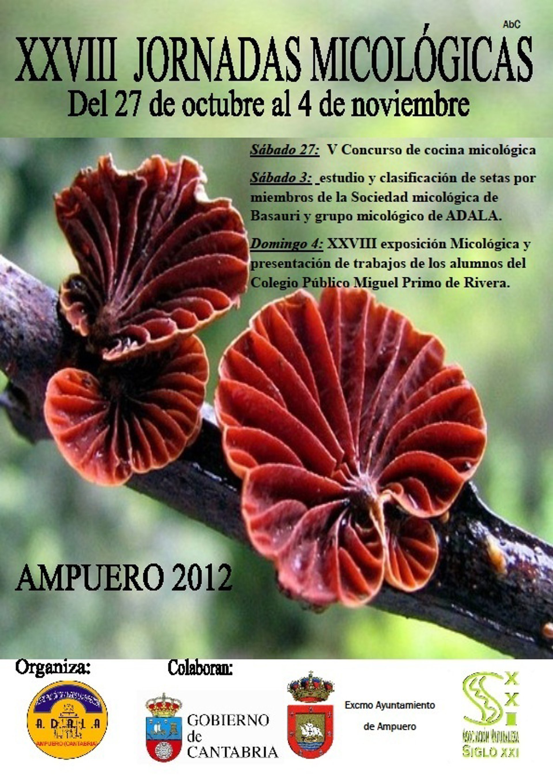 Ampuero acogerá entre el 27 de octubre al 4 de noviembre la 28 edición de las Jornadas Micológicas de la Agrupación de Amigos La Parecida (ADALA), que incluirá concursos de cocina, estudios de setas y una exposición.