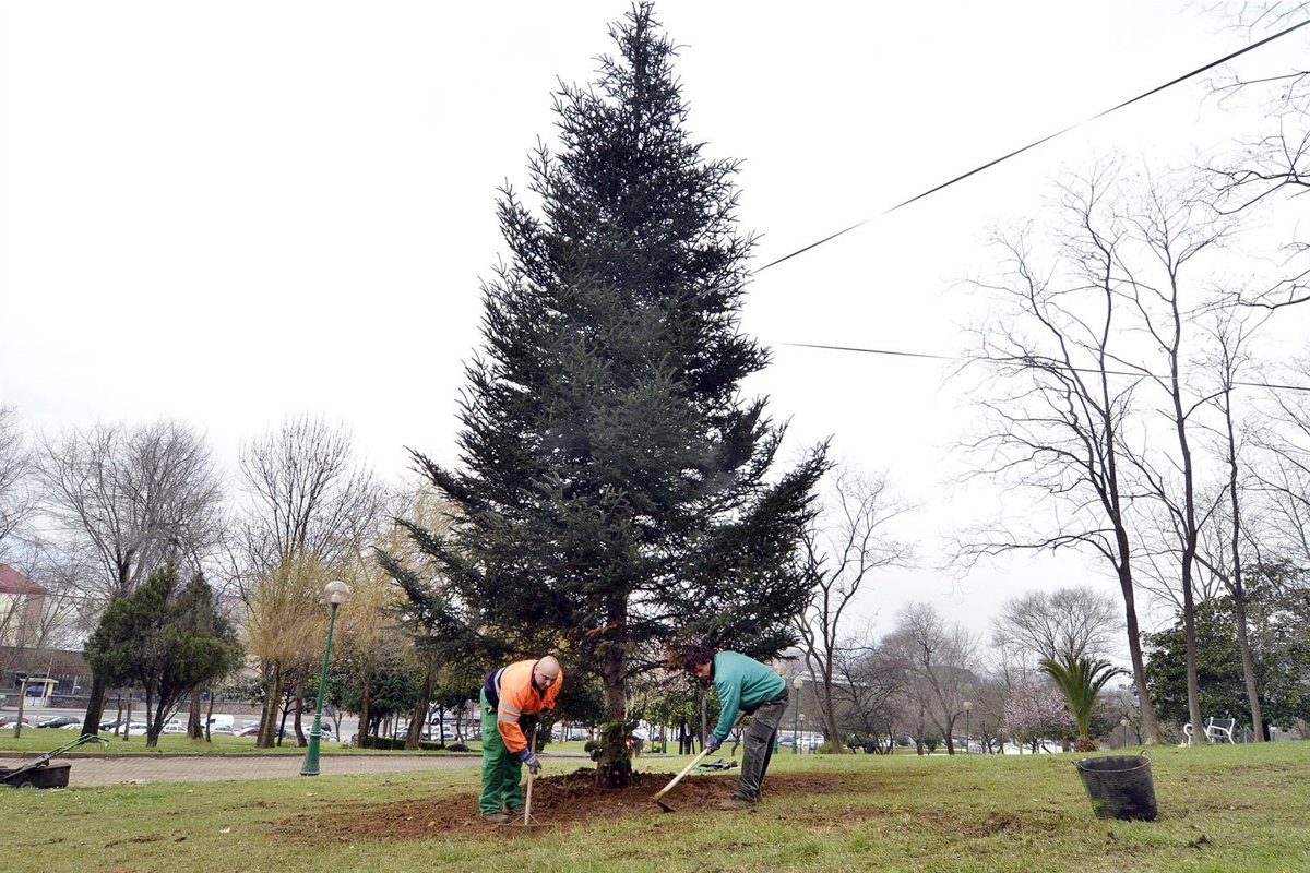 El Ayuntamiento de Santander ha plantado el árbol de Navidad, que desde las pasadas fiestas se encontraba en la Plaza del Ayuntamiento, en el Parque del Doctor Morales.