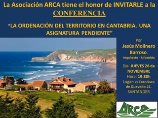 La Asociación para la Defensa de los Recursos Naturales de Cantabria, ARCA, ha organizado para este jueves una conferencia sobre la ordenación el territorio en la región.