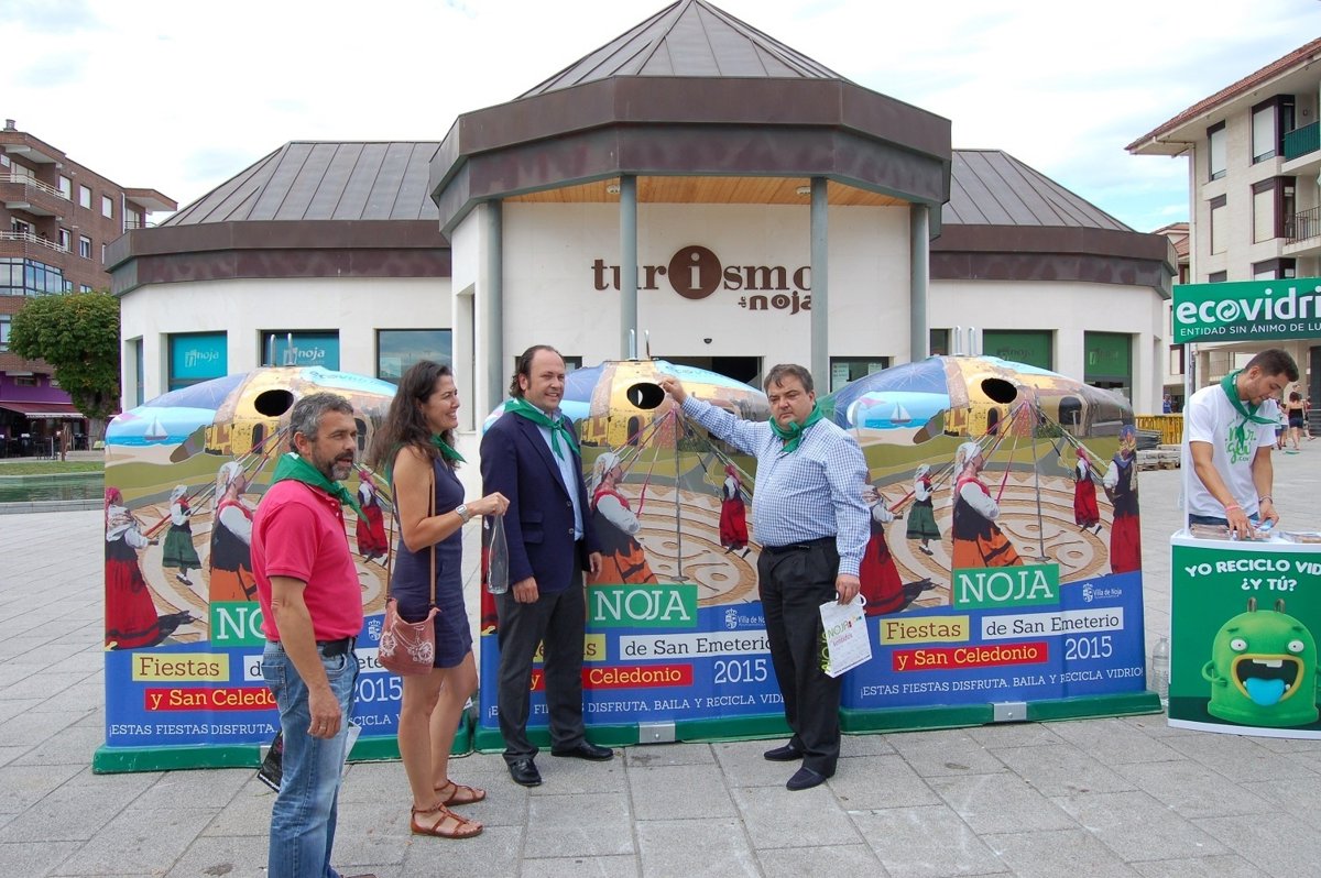 El Ayuntamiento de Noja y la empresa Ecovidrio promueven el reciclaje en esta villa marinera con la iniciativa 'Deposita un envase, llévate un pañuelo de fiesta', que se celebra este jueves y viernes.
