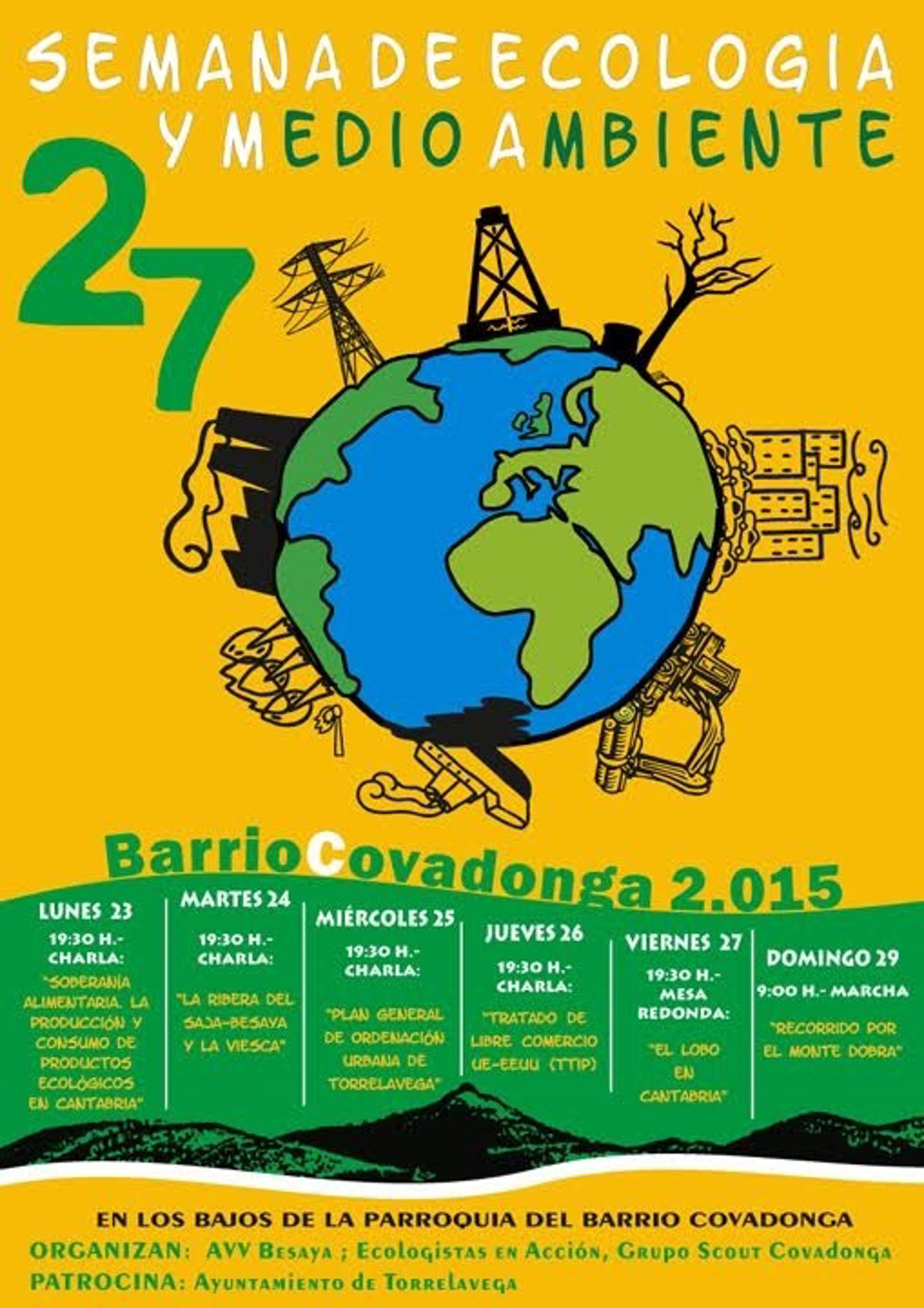 El barrio Covadonga de Torrelavega celebrará la próxima semana su XXVII Semana del Medio Ambiente y Ecología, con cuatro charlas en las que se abordarán temas como la producción ecológica en Cantabria, la situación de distintos espacios naturales del municipio y el plan general que se está elaborando; una mesa redonda sobre la situación del lobo en la comunidad y un recorrido por el monte Dobra.