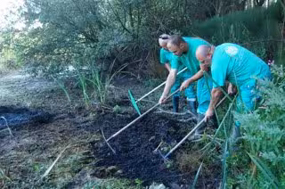 En las últimas semanas se ha iniciado la desecación de la laguna con objeto de provocar estrés hídrico a la planta invasora y, secundariamente, endurecer el sustrato por desecación para facilitar el acceso a los operarios encargados de la recogida manual de la plantas.