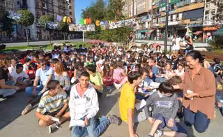 Más de 200 niños santanderinos han reclamado este viernes, cantando en la Plaza del Ayuntamiento, un mayor uso de la bicicleta, del autobús e, incluso, de los propios pies, frente al vehículo privado.