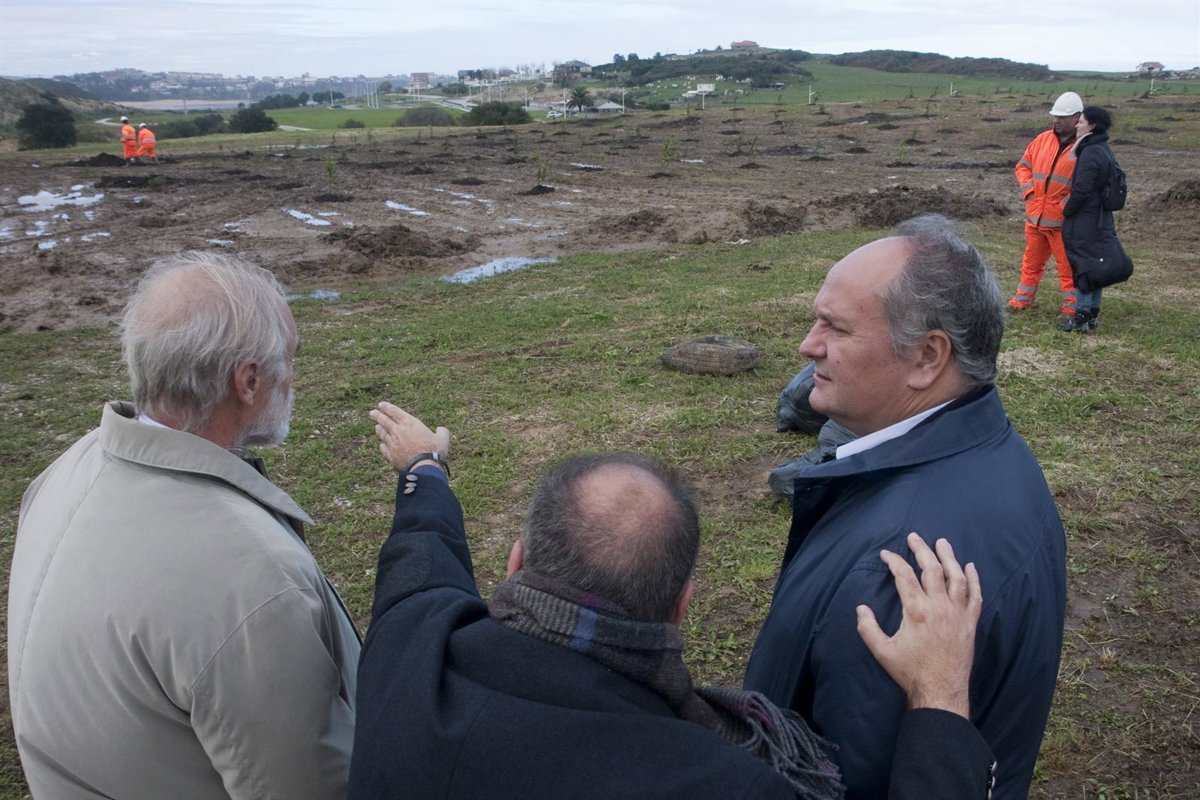El consejero de Medio Ambiente, Ordenación del Territorio y Urbanismo, Javier Fernández, junto con el alcalde de Miengo, Avelino Cuartas, ha visitado este viernes las obras de restauración ambiental que el Gobierno de Cantabria está realizando, a través de MARE, en la antigua duna de Cuchía. La actuación contempla la plantación de 2.880 árboles en sustitución de especies invasoras.