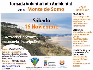 La Fundación Naturaleza y Hombre (FNYH), en el marco del Programa de Educación y Voluntariado Ambiental de Cantabria, PROVOCA, promovido por la Consejería de Medioambiente, Ordenación del Territorio y Urbanismo del Gobierno de Cantabria, propone este sábado 16 descubrir el Monte de Somo participando en su conservación.