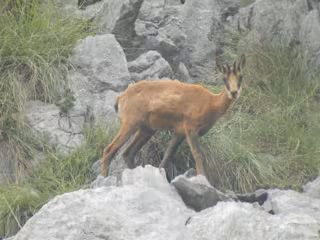 El rebeco es un ungulado herbívoro de hábitos diurnos que vive en los roquedos de montaña, que le protegen de los depredadores, gracias a su habilidad para saltar entre las rocas.