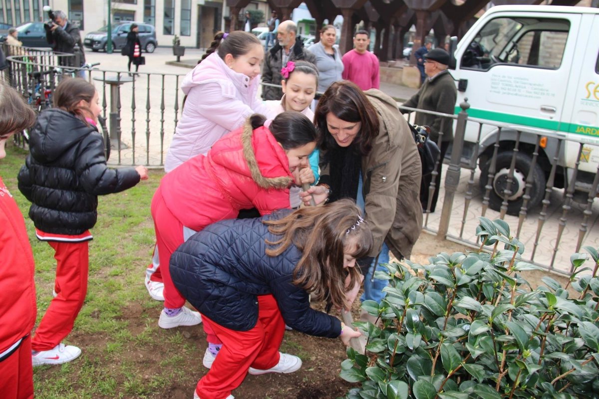 Los actos se han llevado a cabo en dos espacios, en el área verde que hay en el Centro Pedro Lázaro Baruque, donde los alumnos del colegio Mayer y José María Pereda han plantado dos camelias a punto de 'echar flor', con motivo de la venida de la primavera, y en el