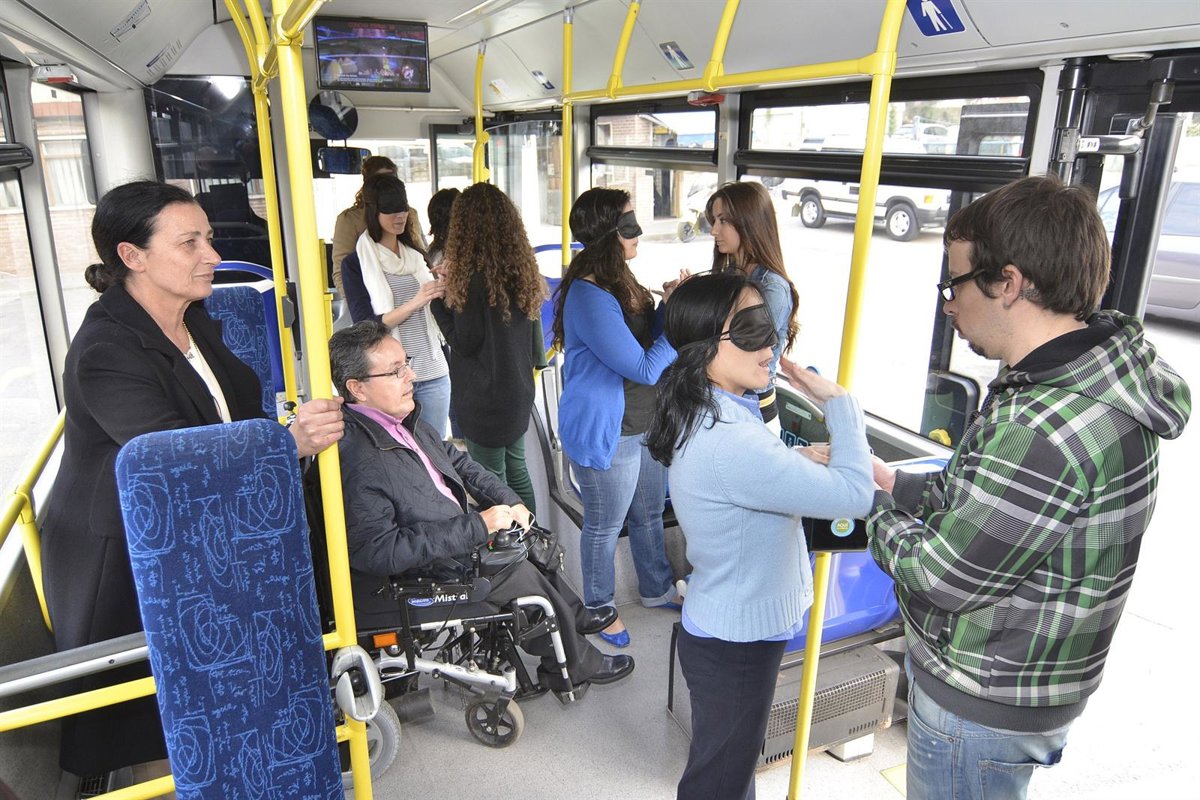 Durante la clase práctica impartida en uno de los autobuses del TUS a lo largo de dos horas, los alumnos asumieron ambos roles, el de guía-intérprete y el de sordociego, con el objetivo de que aprendieran en primera persona las dificultades que se encuentran unos y otros en su vida diaria.