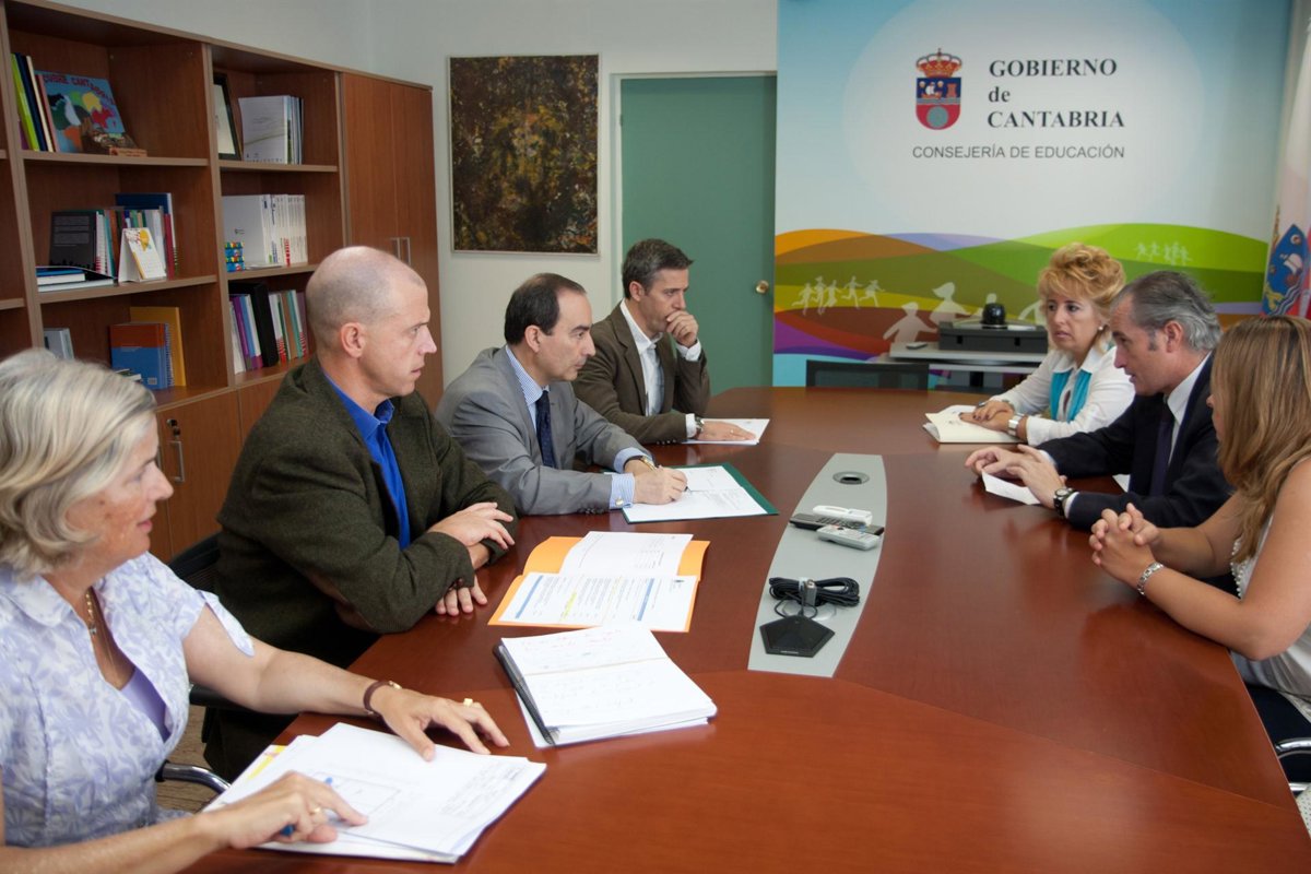 Miguel Ángel Serna y José Manuel Igual, quien ha acudido acompañado por las concejalas de Educación y de Cultura y Deporte, han mantenido este miércoles una reunión en la que también han estado presentes los directores generales de Personal y Centro Docentes, María Luisa Sáez de Ibarra; de Cultura, Joaquín Solanas, y de Deporte, Javier Soler-Espiauba.
