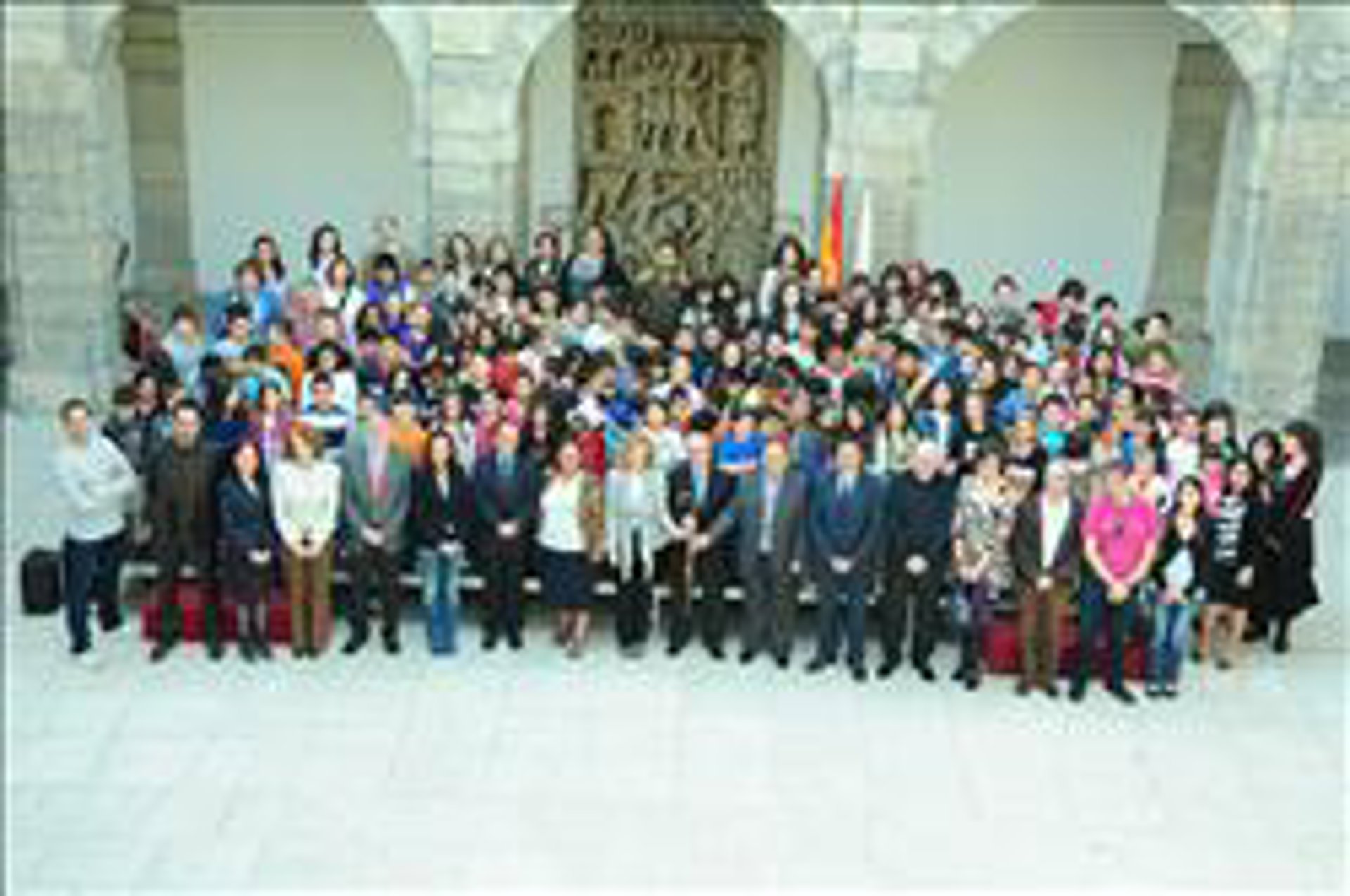 Previamente a las palabras de las autoridades, 140 alumnos de los colegios 'Jesús Cancio' y 'Gerardo Diego', de Santander; 'Menéndez Pidal' de Torrelavega, y 'Juan de Herrera' de Maliaño, han dado "una magnífica lección de historia y de convivencia", en palabras de la consejera.
