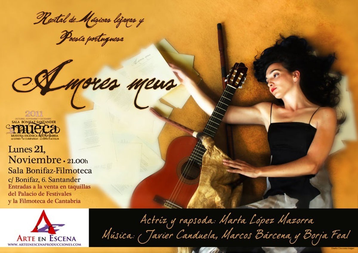 Arte en Escena presenta este lunes a las 21.00 horas en la Sala Bonifaz de la Filmoteca el espectáculo 'Amores Meus', de temática portuguesa y de otros países, dentro de la Muestra Escénica de Cantabria (MUECA).