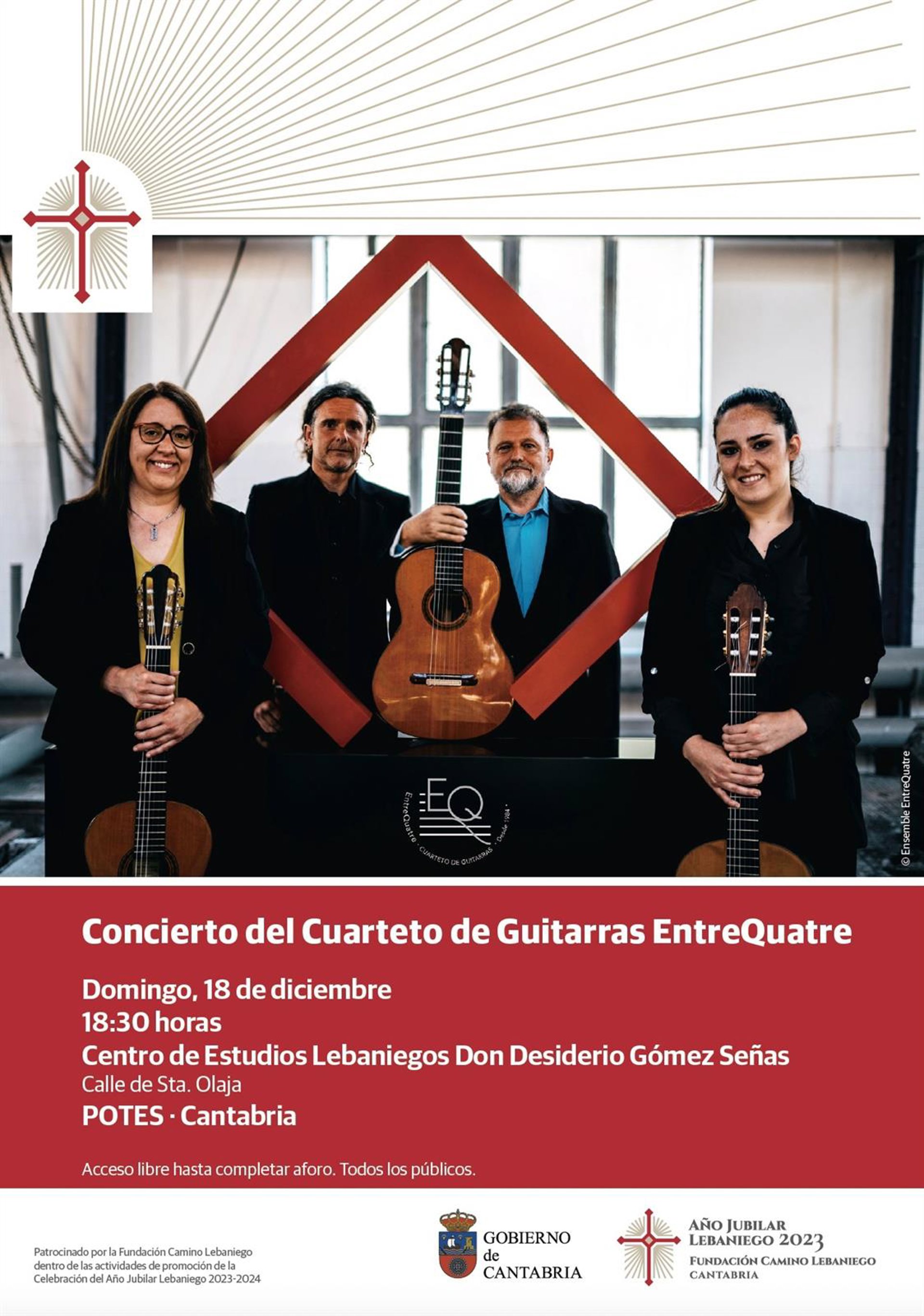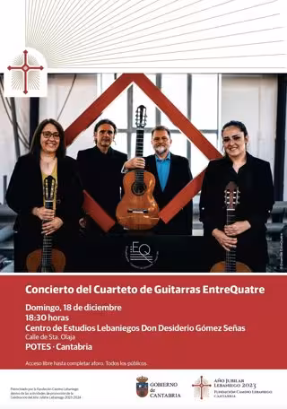 Asimismo, el cuarteto de guitarras 'Entre Quatre-Vuelta al Mundo en cuatro guitarras' celebrará un concierto en el Auditorio Bajo Deva de Unquera, a las 12.30 horas, y en el Centro de Estudios Lebaniegos de Potes, a las 18.30 horas.