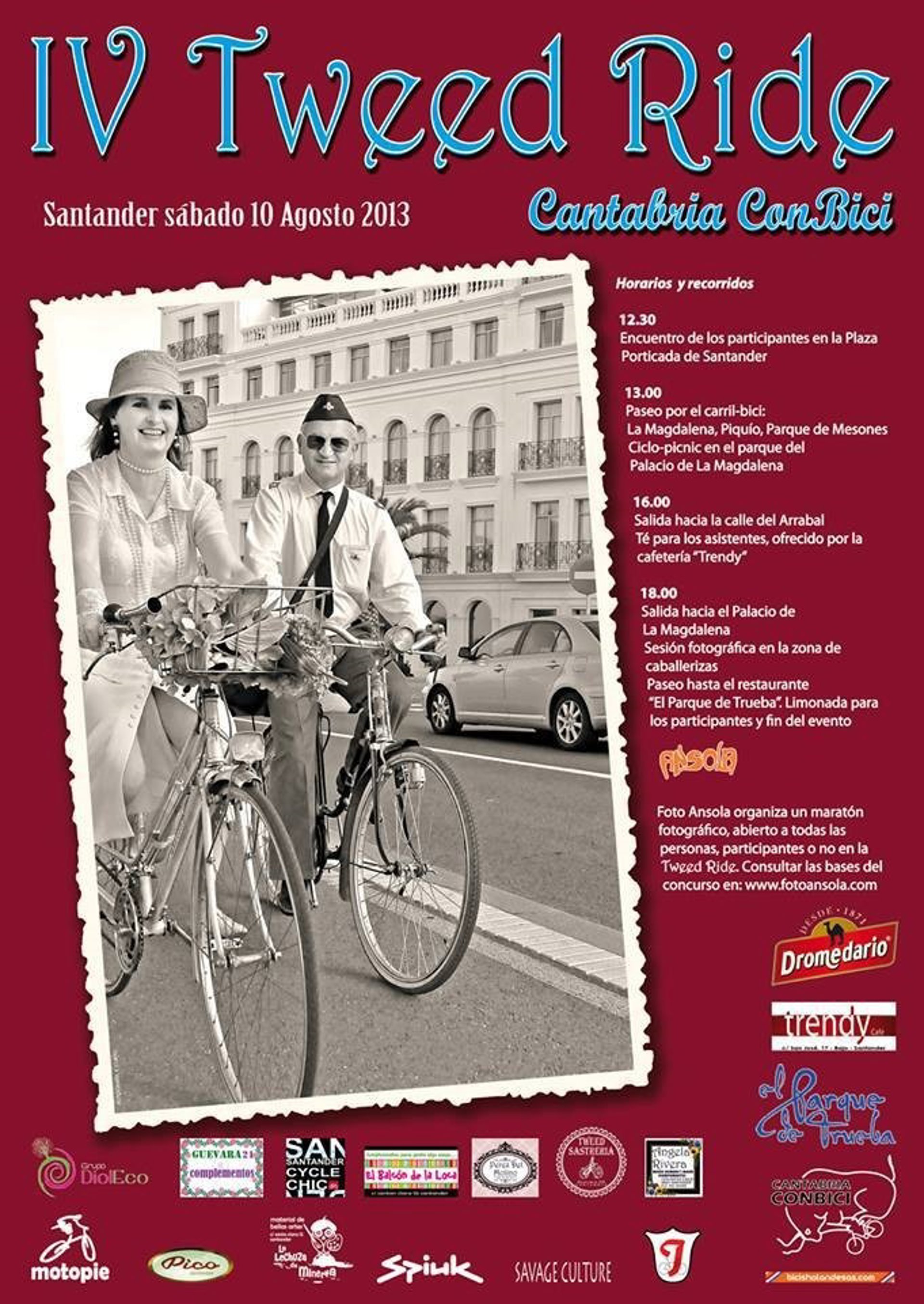 Cantabria ConBici celebra este sábado la cuarta edición de la Tweed Ride, un paseo por la ciudad con bicis clásicas o antiguas, cuyos participantes visten ropas clásicas e intemporales de tejidos naturales como el tweed, la lana, el algodón o la seda.