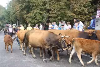 Las reses procedentes de los municipios de Corvera de Toranzo, Santiurde de Toranzo, Puente Viesgo y Luena, así como de Villafufre, San Felices de Buelna o Marina de Cudeyo, han participado en la tradicional "pasá" desde Ontaneda a Alceda.