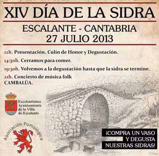La Asociación Pomológica de Escalante celebrará este sábado, 27 de julio, su XIV Día de la Sidra, tradicional fiesta en la que el municipio rendirá su particular homenaje al jugo de manzana más famoso, cuya producción a nivel local cuenta con una gran calidad.