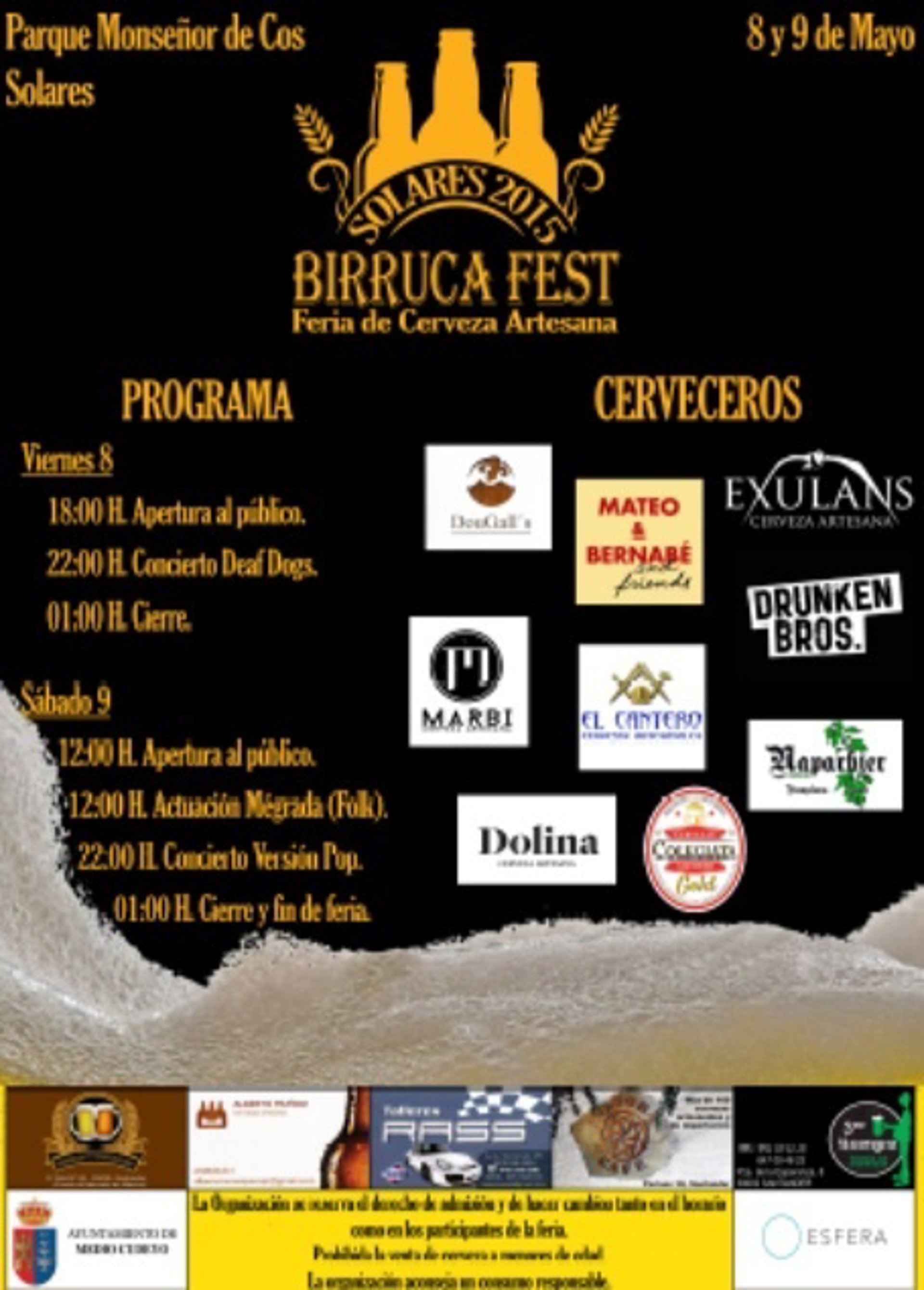 Solares celebra este viernes y sábado, 8 y 9 de mayo, en el Parque Monseñor de Cos, el Birruca Fest, una feria de la cerveza artesana en la que se darán cita los mejores productores cerveceros artesanales del panorama nacional.