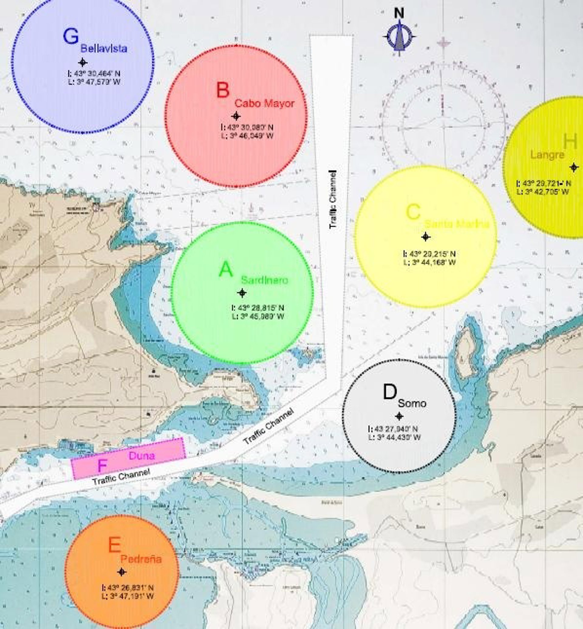 De esta manera, las ocho zonas se encuentran en lugares bien distintos de la geografía de litoral santanderino, con los denominados Golf, Bravo y Hotel como los más alejados, y con condiciones que pueden llegar a ser más extremas.