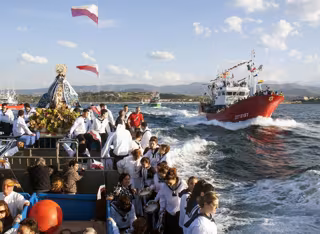 Tras las picayas tendrá lugar la peregrinación marítima, embarcando a la Virgen en el pesquero 'Justo Lecue', que será escoltado por decenas de embarcaciones repletas de vecinos, que harán sonar sus bocinas, que se fundirán con los cánticos marineros.
