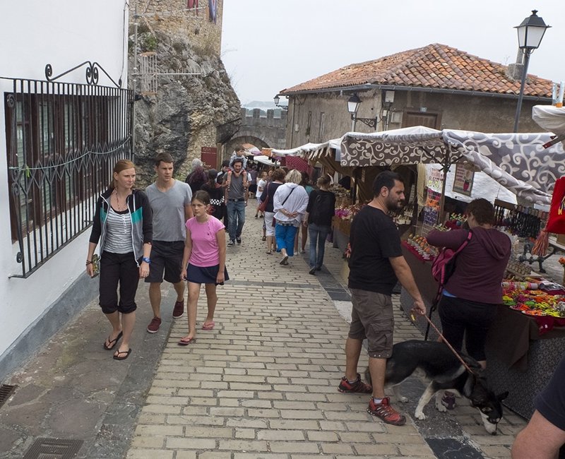 La calle Alta de la Puebla Vieja, uno de los barrios más emblemáticos de San Vicente de la Barquera, acoge este fin de semana la XII edición del mercadillo medieval, compuesto por 69 tiendas desde el puente de La Barquera hasta la iglesia de Nuestra Señora de los Ángeles.