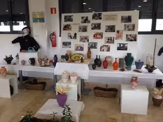 La exposición no sólo muestra algunos de los objetos de cerámica y manualidades realizados en los talleres, sino también una selección de fotografías, que ilustran la evolución de los mismos.