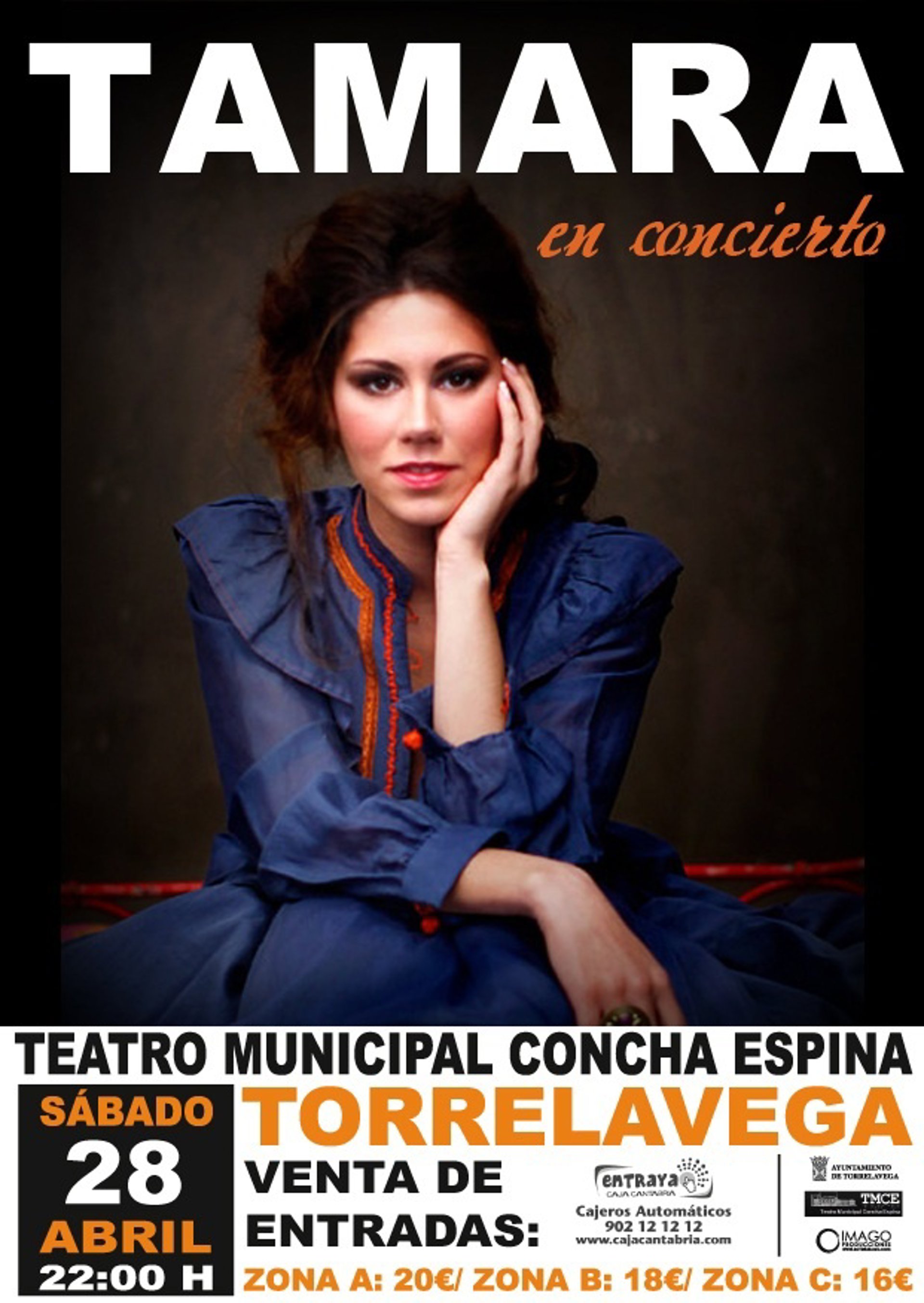 La cantante Tamara ofrecerá este sábado, 28 de abril, un concierto en el Teatro Municipal Concha Espina de Torrelavega. La actuación, que se enmarca dentro del Ciclo de Música en el Teatro de Torrelavega MUTE, pertenece a una gira que ha llevado a la artista a recorrer toda la geografía española.
