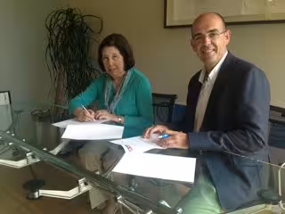 El presidente de la Asociación de Empresarios de Campings de Cantabria, Pablo Alonso, y la presidenta de AMICA, Sagrario Cagigas Cuesta, han firmado un convenio de colaboración a través del que se busca favorecer la incorporación de personas con discapacidad al ámbito laboral, así como promover la Responsabilidad Social Empresarial.