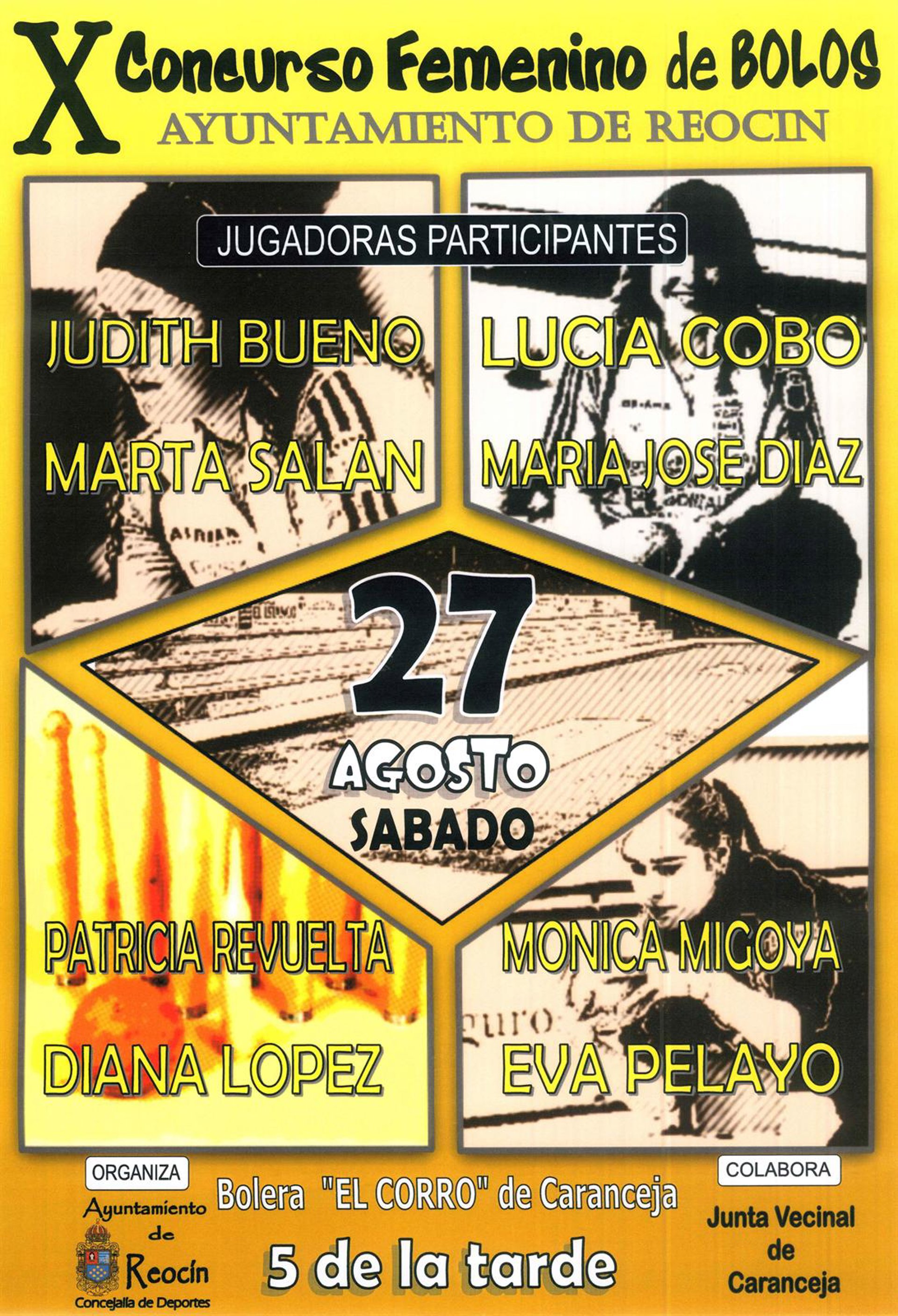 Por su parte, la bolera 'El Corro' de Caranceja, será sede este sábado, día 27, a partir de las cinco de la tarde, del X Concurso Femenino de Bolos Ayuntamiento de Reocín que reunirá a ocho jugadoras destacadas en el ranking regional. El certamen está organizado por la Concejalía de Juventud y Deporte, con la colaboración de la Junta Vecinal.