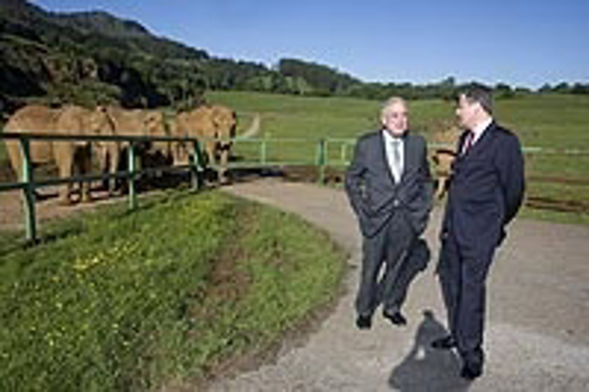 Tomás Regalado ha visitado los recintos más destacados del Parque de la Naturaleza de Cabárceno, entre ellos el de Elefantes, gorilas y osos, de los que, en sus palabras, "ha quedado sorprendido" y ha definido el parque como "espectacular".