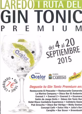 Un total de 21 establecimientos hosteleros de Laredo participarán desde este viernes, 4 de septiembre, al día 20 en la primera Ruta del Gin Tonic, una iniciativa organizada por la Asociación de Comerciantes y Empresarios de Laredo (ACELAR) para "despedir el verano dejando un buen sabor de boca a sus clientes".