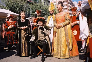 El Emperador y su séquito pasearán por diferentes zonas de Laredo acompañados por músicos, bailarinas y el 'Gruppo Storico Musici e Sbandieratori Contrada Della Cuerva di Noale', venidos desde Venecia para honrar la figura del Sire y sus hermanas. Les acompañarán las Peripecias del Bufón Urcúleo.