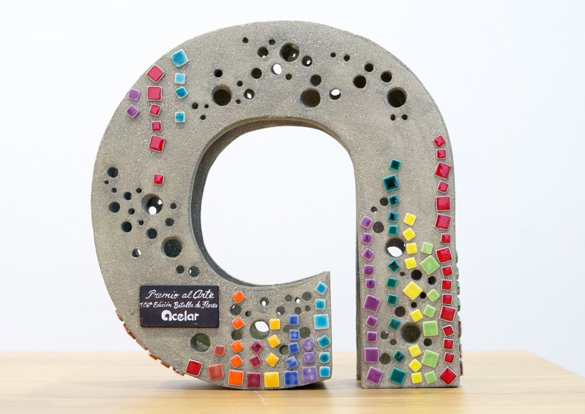 La obra es una pieza de cerámica que representa la letra A del logotipo de ACELAR, además de la inicial de 'Arte'. Los colores en la parte inferior simbolizan las diferentes tonalidades de las flores que los carrocistas utilizan en sus creaciones.