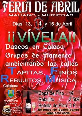 La feria se desarrollará en más de 50 bares de Maliaño-Muriedas, que ofrecerán tapas, rebujito y manzanilla. También actuará el grupo 'Son de Flamenco', que recorrerá las calles del casco urbano en horario de mañana y tarde.