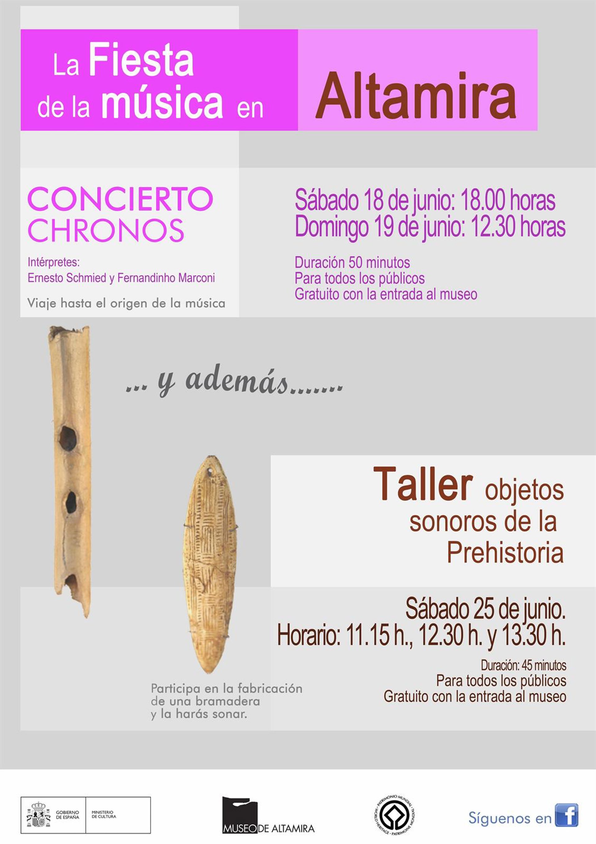 Además, el sábado 25 de junio, el público podrá participar en el taller 'Objetos sonoros de la Prehistoria', en el que se mostrará el modo de fabricación y el uso de los objetos sonoros que utilizaron las personas de los tiempos de Altamira: los silbatos y las bramaderas, fabricados a partir de huesos de animales.