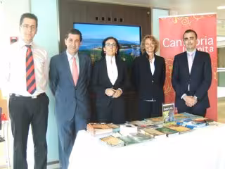 El director general de Turismo, Francisco Agudo, y el director general de Cantur, Roberto Media, acompañados de Daniel Holt, en representación de Britanny Ferries, han inaugurado el espacio de Cantabria en el barco, cuyo objetivo es dar a conocer a los viajeros del ferry los atractivos turísticos de la región, así como toda la oferta cultural, paisajística y de ocio, con el fin de que profundicen en el conocimiento de la región y motivar a los mismos a considerarla como un destino turístico.