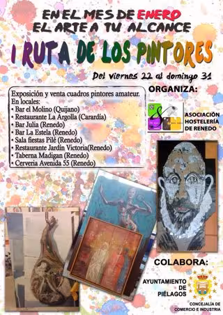 La I Ruta de los pintores se desarrollará en el bar El Molino de Quijano; el restaurante La Argolla de Carandía; así como en los bares Julia y La Estela, la sala de fiestas Pilé, el restaurante Jardín de de la Victoria, la taberna Madigan y la cervecería Avenida 55, ubicados todos ellos en Renedo, informa el Ayuntamiento en nota de prensa.