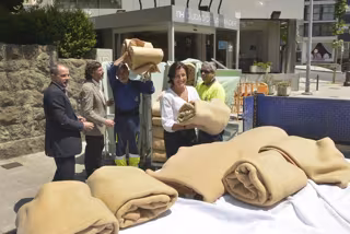 El director del centro, Francisco Roldán, ha entregado un lote de 34 mantas "en perfecto estado" a los concejales en funciones de Turismo y Familia y Servicios Sociales, Gema Igual y Antonio Gómez, respectivamente, para las instalaciones municipales ubicadas en Candina.