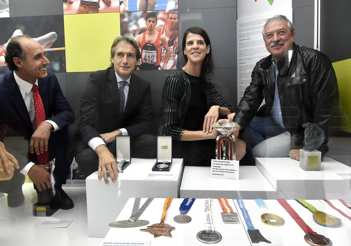 La atleta Ruth Beitia ha entregado este lunes al alcalde de Santander, Iñigo de la Serna, el trofeo de la Liga de Diamante, que ha pasado a formar parte de la exposición permanente del módulo de atletismo del Museo del Deporte, situado en el anillo exterior del Palacio de Deportes.